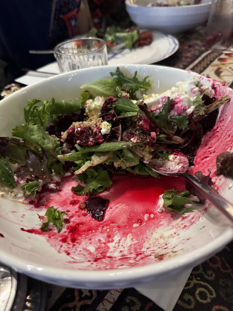 I recently had the chance to try a Georgian meal for lunch with colleagues, and it was a delightful experience. While Georgian cuisine might be new to some (including myself), I can confidently say the food here was fantastic. Every dish was hearty, well-seasoned, and executed with care from start to finish. If you’ve ever thought Eastern European cuisine was boring, this place will definitely make you think twice. We ordered an array of dishes, including Traditional Georgian Salad, Stewed Beet Salad, Baked Mushrooms with Sulguni Cheese, Pork & Beef Khinkali, Chanakhi, Megruli Khachapuri, Pork & Beef Lula Kebab, and Chicken Shish Kebab. Each dish had its own unique character, and the standout for me was the way cheeses were used throughout the menu. The various tone of flavors and fragrances of the different cheeses added depth to every dish, from the salads to the Megruli Khachapuri (which might remind you of a cheese pizza at first glance). The kebabs were another highlight. Unlike the heavily spiced Middle Eastern versions common in Toronto, the Georgian kebabs were subtle and balanced. If I had to choose one style of kebab to enjoy forever, Georgian would win hands down. I also tried Nabeglavi sparkling water, and while it had a noticeably salty taste at first, reminiscent of natural mountain mineral water, it quickly grew on me. It was incredibly refreshing and complemented the meal perfectly. This small restaurant packs a surprising punch of flavor, and I can’t wait to return. If you’re looking to try something new and unforgettable, Georgian cuisine might just become your new favorite.