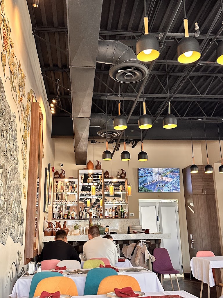 The interior decor of the restaurant was amazing. The plates and tableware were all very authentic. The staff were wonderful and happily explained any menu items we were unsure of. The beef khinkali, mushroom cream soup, and lobio were absolutely exquisite. Vegetarian options: Some of the menu items had vegetarian flags on them. Parking: There is a shared outside parking lot which the front facing stores/restaurants all share. There is a decent amount of space in it. Kid-friendliness: There were child seats available.