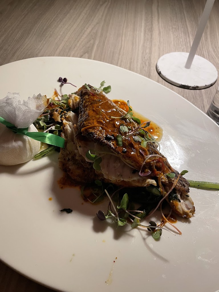 Very nice experience. Got the big fish from the market which costed more than I expected but it was so good and very filling. Chef Tony served the fish table side and the staff were awesome. Vegetarian options: Vegetarian and vegan options available Dietary restrictions: Staff ask you about dietary restrictions