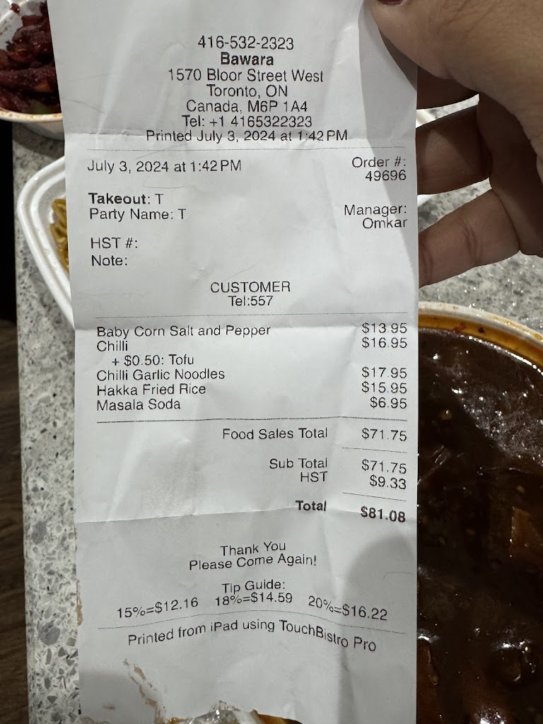 Bawara has been one of my most favourite spots in downtown for a while now ! Whenever Im craving desi Chinese or Hakka cuisine, this is where youll find me. Our server, Kajol was super nice and took time to recommend dishes according to our likes and spice level. 10/10 for service! One of my most favourite things to order here is the Triple Schezwan Chicken. Now, manchow soup is also added to my list of favourites! Highly recommended spot