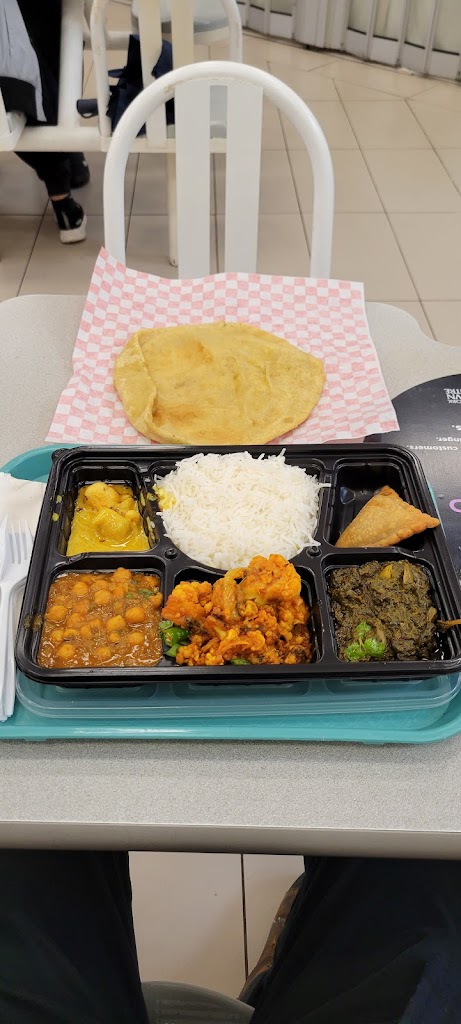 A really great surprise. This is a takeout place and you eat your food at nearby tables. The woman who was at the cash register and took the order was really kind and engaging. The food is delicious. The onion bhajias and the chana masala and bhatura combo was delicious. The food looks fresh and the place and kitchen was well kept and clean. The prices are a bargain too- two of us are well for under $20, taxes included. Going to try some of the other options next time. Vegetarian options: Some great vegetarian options. Parking: It s in a mall. Parking depends on how busy it is at the mall. Kid-friendliness: You can order lots of items kids would like.