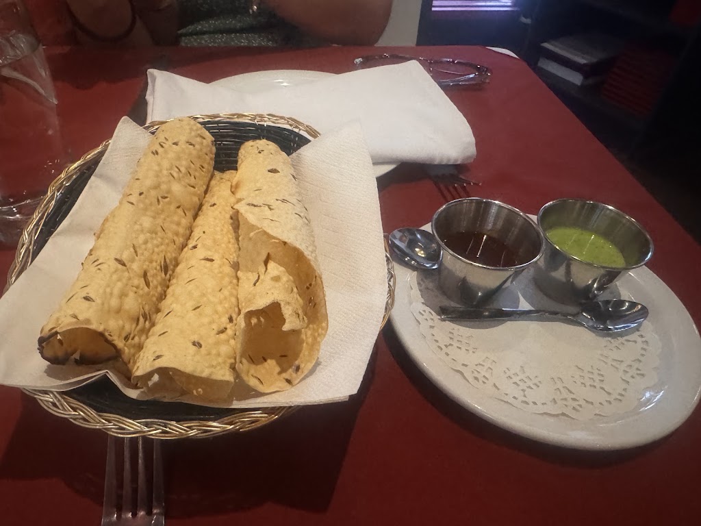 We had walked by on Tues and although closed, the place looked inviting so we tried it tonight and we were not disappointed. The menu offered vegetarian, chicken, beef, lamb and seafood options. I had Chicken Tikka Masala - which they customized by omitting the peppers and asked for mildly spiced - it perfect for me. Hubby likes spice and got the Beef Vindaloo and we both enjoyed our dishes with garlic naan. Appreciated the Indian music level which allowed us to chat, and the service was friendly and helpful. Rasmalai and chai were great. Busy with take outs but nice spot for casual fine in. Restrooms are dated but clean but not accessible for those who cannot go stairs. We'll be back - thanks!