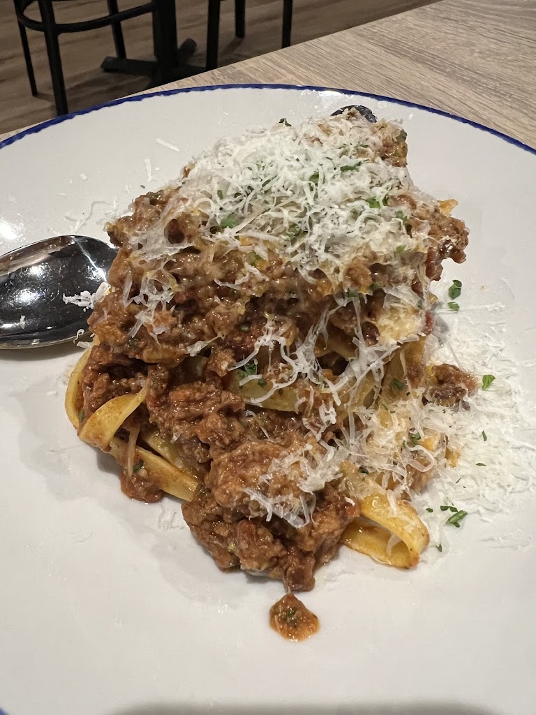 The pasta bolognese was perfect and delicious. The server was incredibly accommodating and friendly.