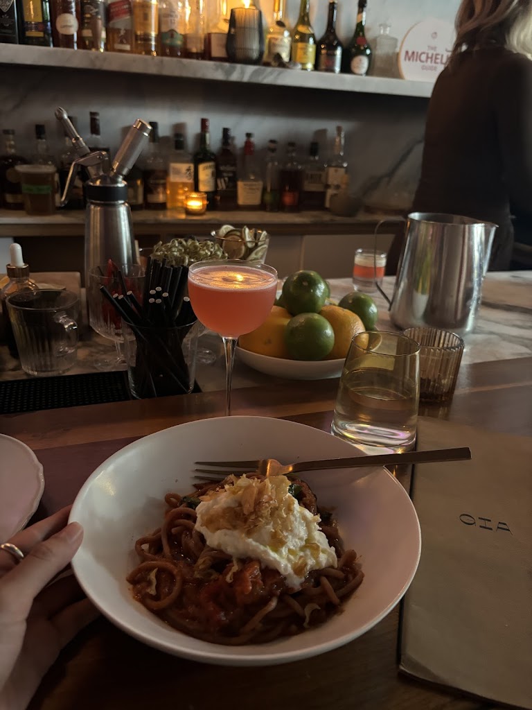 Such a cute, modern spot. I'd say perfect for a girl's night out, or a cute date. Cocktails are fun and inventive- the "I Should Live In Salt" paired gin with basil oil and tomato brine... How savory and exciting! Food was equally as good- and it's all either vegetarian or vegan, so you can really try a number of things. The pasta had excellent texture and the sauce tasted fresh and was absolutely mouth-watering. The Semolina cake at the end is a MUST- a hearty portion that goes especially well with an espresso to wash everything down.
