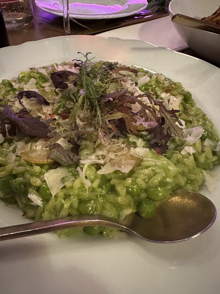 The froccacia was light, fluffy, salty. It was great. The leek risotto. The leeks were well seasoned and tasty, the risotto was fine but I would personally never order it again. The elder flower cocktail was nice and reshreshing, not too sweet. It was a good balance of flavor. The problem - one of the leafs in the risotto had a dead worm like bug on it. I had brought it to the attention of the waitress, she then grabbed a napkin and I put the leaf with the bug on it in the napkin. She did not apologize, no body apologized. They didnt offer any sort of discount for the experience, it was completely ignored. I understand that fresh produce has the risk of bugs but to not even get an apology is unheard of. I would not go back based on how the problem was handled.