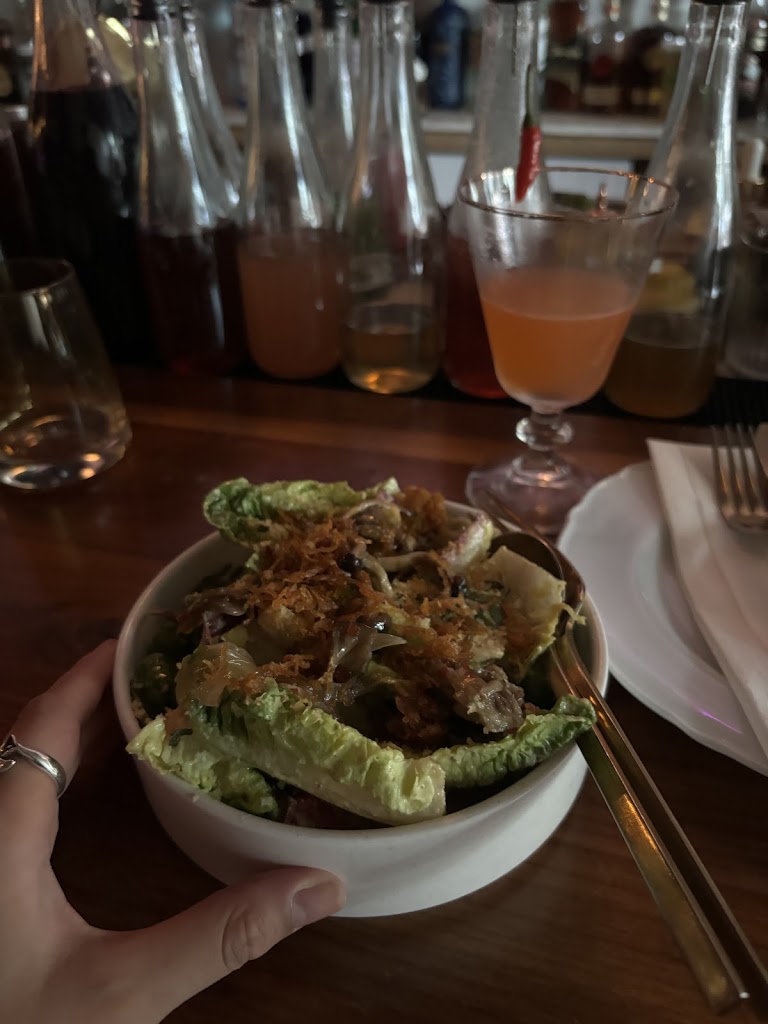 The food was incredible! The vibe of the restaurant is cozy, vibrant, and elegant, all at the same time. Definitely a great spot for date night. The cocktails are also very unique and well thought out. Overall, a lovely place!