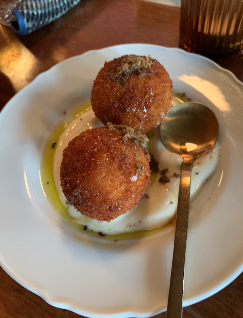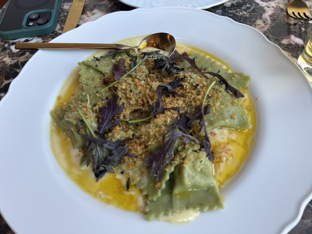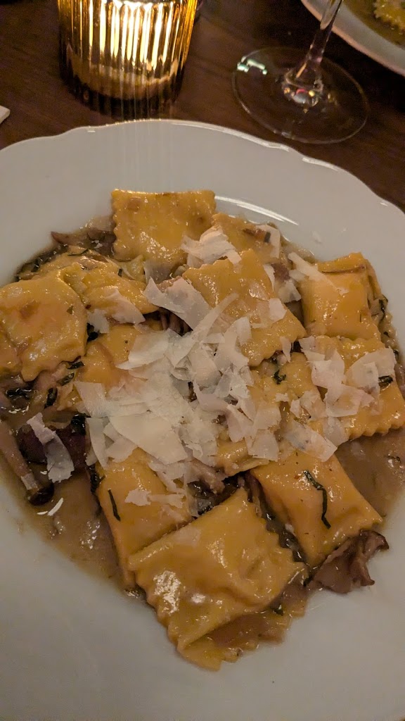 We had arancini and peach crostini to start, which were delicious. The corn ravioli were very tasty, too. The truffle pasta was good as well, but we could barely taste the truffles (despite the visible shavings on top). So the $35 for that werent justified in our view. Also, the romanesco as a side was tasty, but the presentation could be a bit nicer. Service was great and friendly. Mocktails and Wine were great. Atmosphere was nice too. Can recommend if you want to treat yourself to some good Italian food!