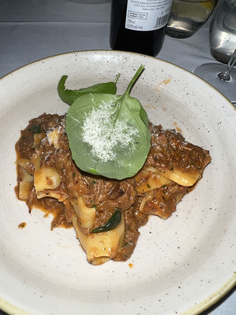 Beautiful place. Welcoming decor. We had a fantastic appetizer (can’t remember the name) and brisket pasta. Both delicious and generous in quantity. A bottle of Tuscan wine of course to complete the experience. Friendly service with a smile by Selma. Highly recommended!!