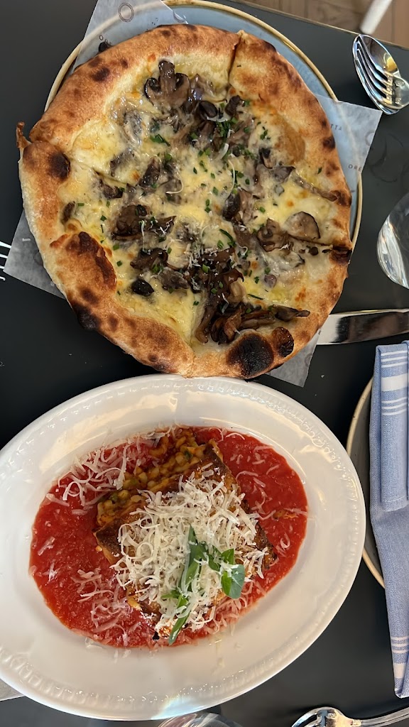 First time there. Was craving Italian food so my husband and I stopped in. Bright cheery atmosphere. They sat us outside which was closed in with heat. We had to go sit inside after 10 mins. The electric radiators they have in the ceiling were so hot It felt like I was getting burned. They could have turned some off, or lowered the temperature? Sitting with 3 surrounding a person is overboard. I ordered eggplant parmigiana. I received a dish with 3 tiers of round pancake like eggplant. The taste was not bad, but I had to dismantle the tiers in order to eat. Eggplant parmigiana is not traditionally made like that. It is made like lasagna, in layers. My husband ordered their tagliatelle but instead received pappardelle (super wide long noodles, 1 inch wide) in a veal Bolognese sauce. The veal tasted like pork. It was impossible to eat this pasta because they gave him a knife and a fork. As an Italian I am used to eating my spaghetti or long pasta with a fork, sometimes a spoon is required , depending on the pasta. And their forks are these huge heavy utensils with the tines being so thick they do not puncture anything making it difficult to pick up the food. We asked for a spoon for him (I understand its not socially acceptable in Italy) but we were told by the server that Italians do not eat pasta with a spoon and fork, they eat their pasta with knife and fork. LOL. Growing up at our Italian table even as a child I never had a knife to eat my pasta nor did I ever see any of my family members using one. We never chopped our pasta up in order to eat it. We learned to twist the pasta with a fork. LOL. If you need to chop your pasta up then dont bother eating long pasta, just stick to the short pasta. I did not bother to respond to the comment, I found it too hilarious.
