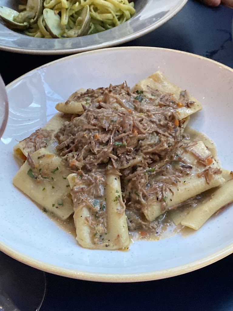 Ordered the Paccheri Genovese it lacked flavour. Great presentation though. Service was slow only because the server didnt put in our dinner order when we ordered our bread. Beautifully decorated restaurant. Where we sat tables were to close to get together