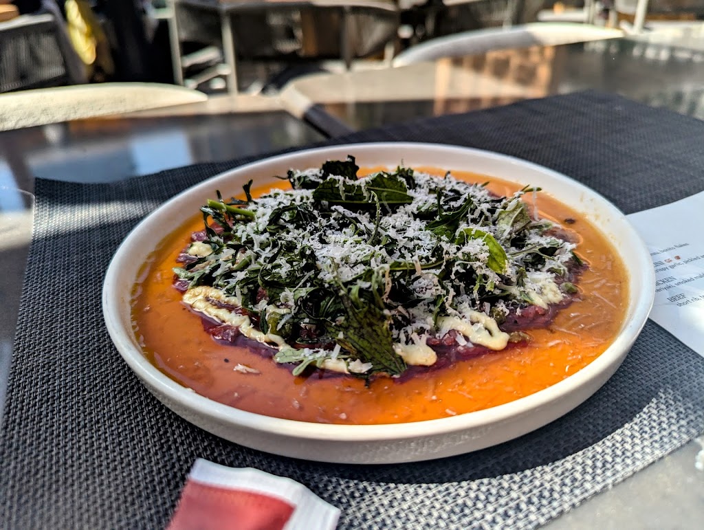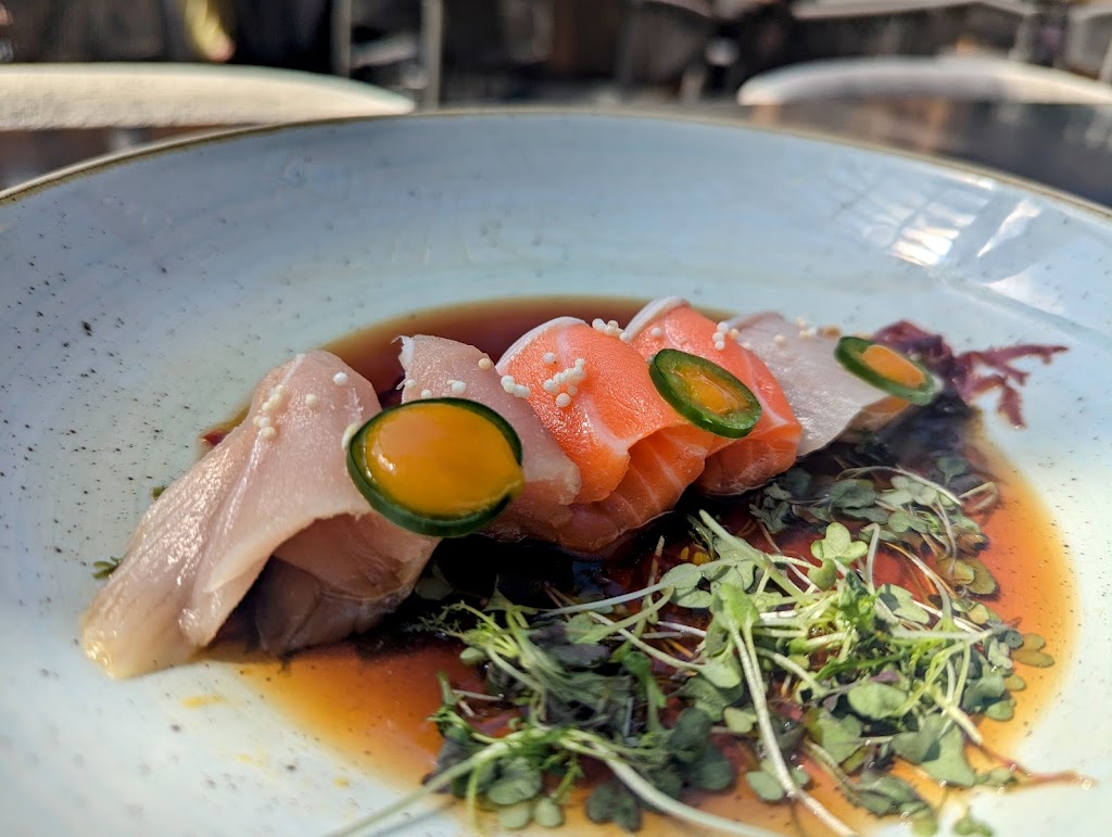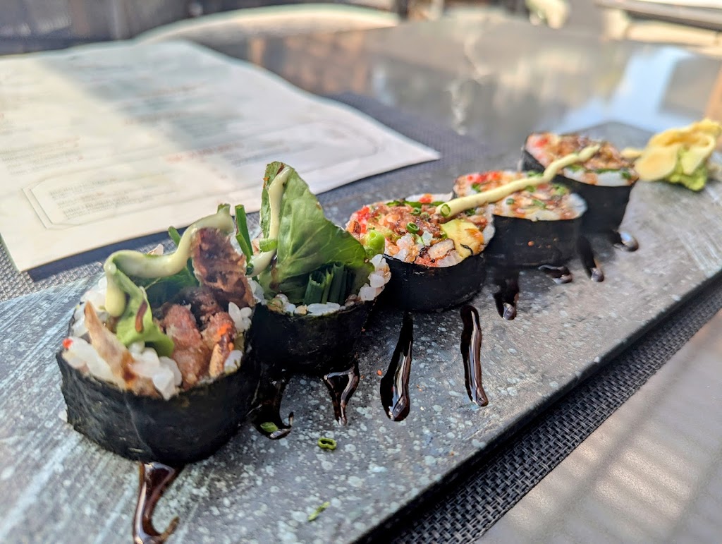 Food was fantastic. Came on a perfect Sunday afternoon, and the whole patio was open and the sun was out . Friendly staff and they provided great food recommendations. We got the Crudo, carpaccio, wagyu beef with Bao Bun, softshell crab sushi, salmon sashimi. All perfect. And their chocolate dessert was delicious and not too sweet.