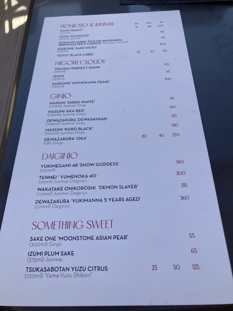 We went here to try their Tea Ceremony. It includes a 1 liter cocktail with 2 snacks for 2 persons at $75. We had Sake Sangria for drinks and we both enjoyed it, it was so refreshing. We tried all their snacks, baked crab handroll, wagyu gyoza and avocado crispy rice. All are perfect companions of the sake sangria! It also included some fruits (lychee, raspberry, orange). The tea ceremony is definitely a fun experience!