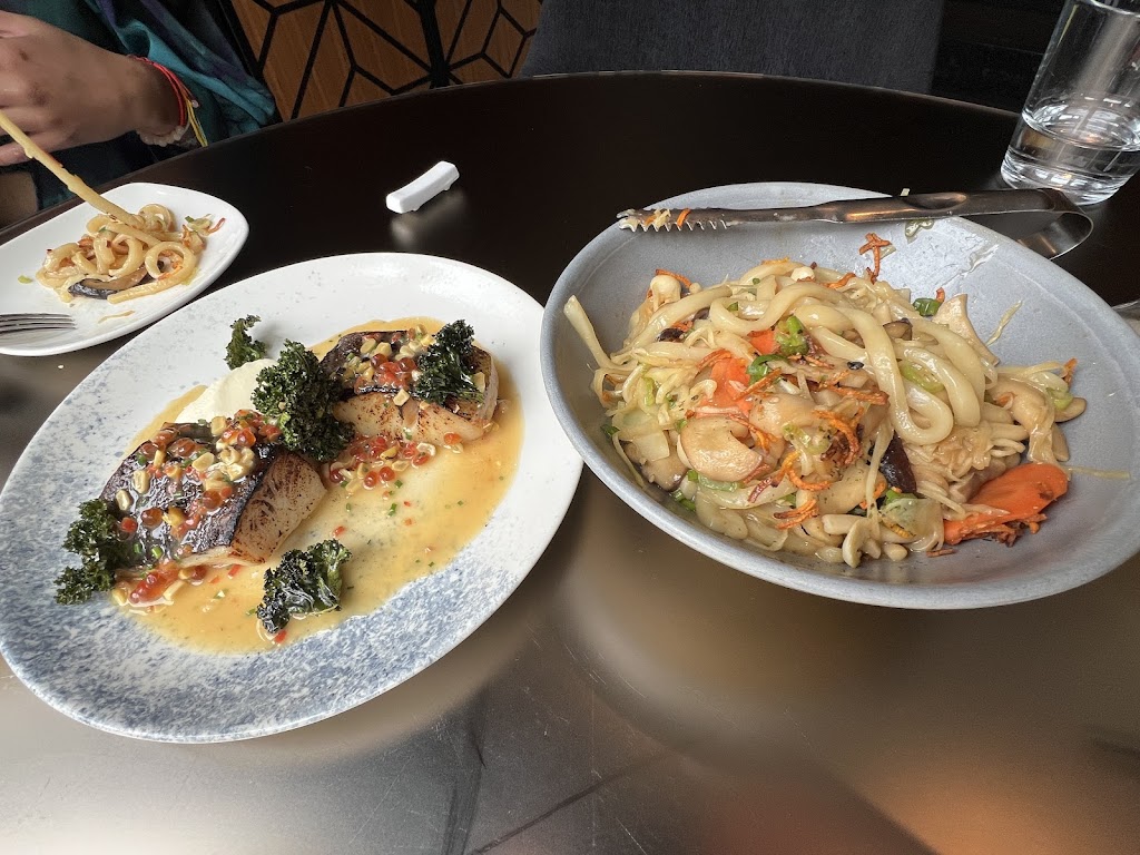 Space is very beautiful and cozy feeling, which is impressive given how huge it is. Music was pretty loud though, I could barely hear our server. Some really good dishes (udon, slaw, crispy rice, maki rolls), some just OK dishes. Cocktails were not great (just sweet, not overly flavourful otherwise). Overall glad we tried it, but unlikely to return.