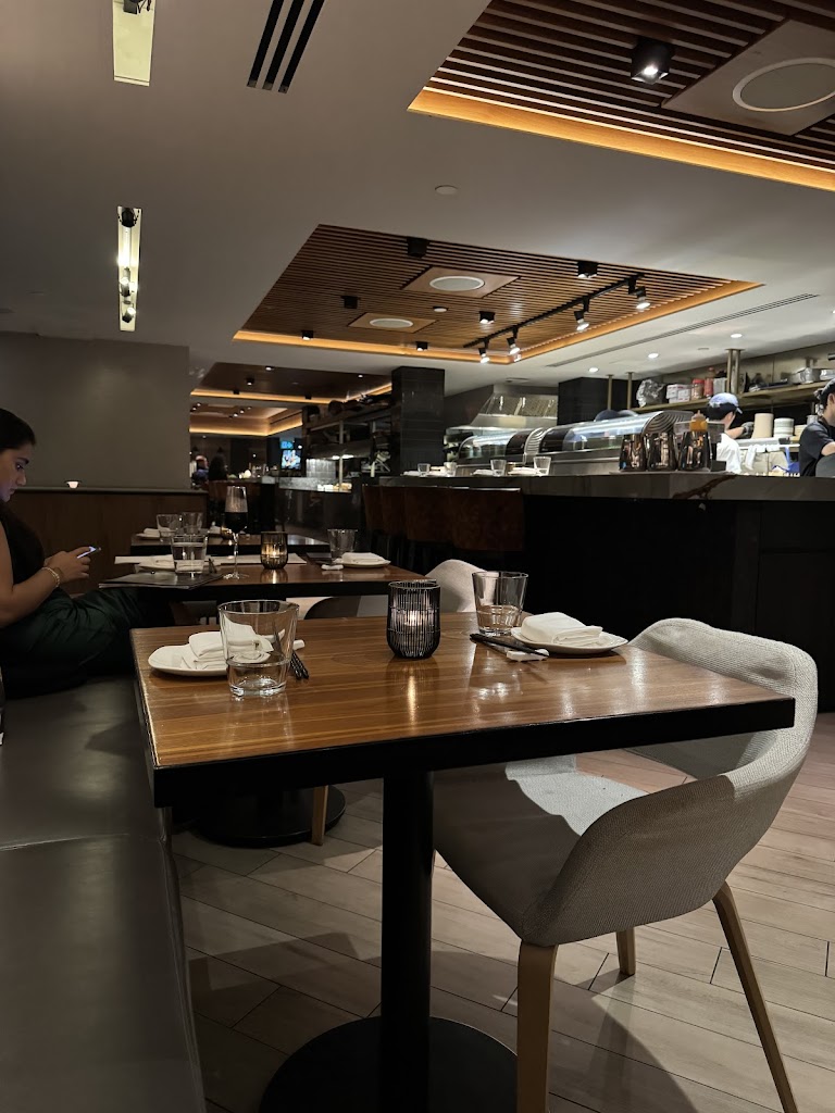 Went there on a Friday night—I'd recommend making a reservation ahead of time as it gets quite busy over the weekend. The atmosphere is nice, though the couches are a bit uncomfortable, so I'd suggest opting for a table with chairs. I wasn't particularly impressed with the Miso Soup or the Edamame, but the main course was a different story. We ordered the Kasa Moto signature rolls, which were good, and the A5 Wagyu, which was incredibly tasty—probably one of their best dishes. For cocktails, we tried the Saffron Sunset and the End Of The Table. The Saffron Sunset was visually appealing, but not my favorite; however, the End Of The Table was pretty good.
