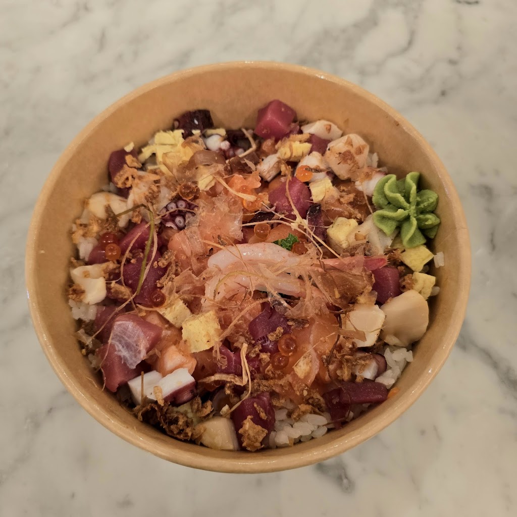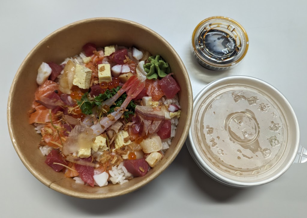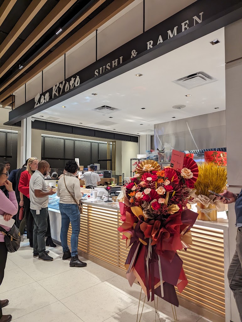 Located in the Bay-Adelaide Centre, Zen Kyoto is a popular spot during weekday lunch hours. They offer online ordering for in-person pick-up but cater to the fast-paced environment of the area. The prices are higher for the location, but the food quality is much better than Sushi-Q in Toronto Eaton Centre. Expect lines during lunch time, but the pick-up experience and food quality are worth it for the area. Also, their end of day sale is 20% off their items at the fridge section. Their menu offers standard items from cash & carry maki rolls to ramen and donburi. We ordered the Chirashi Don and also got complimentary miso soup. Their miso soup seems to be made with slices of fish cake and possibly winter melon. The Chirashi Don features a mix of sweet shrimp, tuna, salmon, egg, octopus, white tuna, salmon roe, bonito flakes, and shiitake mushrooms on a bed of sushi rice. Their cash and carry section offers a variety of standard rolls, torch sushi, and maki roll combinations. Despite being relatively new, Zen Kyoto operates very efficiently, however, it was extremely busy due to its location in the PATH. The unit is well-organized, with separate cashier sections for the cash & carry and the ramen & donburi orders. They provide paper bags for to-go orders, with differentiating colours for ramen and sushi/donburi. There's no dine-in section as it shares a food court. Service was excellent and the turnover was fast.
