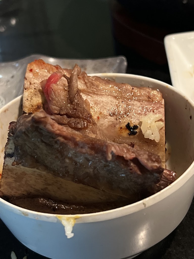 Galbi jjim (beef is really tender., nicely complememted by the carrot fungus. The kind of sauce that can t be bad, but way too sweet. Overall it s delicious, but steeply priced