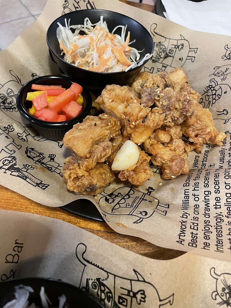 The portions are large, so you can enjoy and share them with friends. Even though it s fried, I was able to eat quite a bit. It s crispy, and the meat is juicy. The radish side dish is a great palate cleanser! It would be nice if there were rice as a side dish. Haha.
