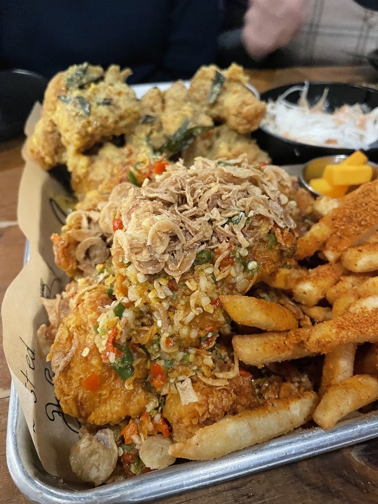 The Sambal Oelek was what I had and it was somewhat spicy. Not a lot of sauce but a-lot of fried garlic and chilli toppings. I would reduce the amount of oil as there was a lot of oil left on the bottom soaking the crispy chicken. Mushroom truffle fries is a must get! The fries were crispy and the truffle cheese was prevalent.