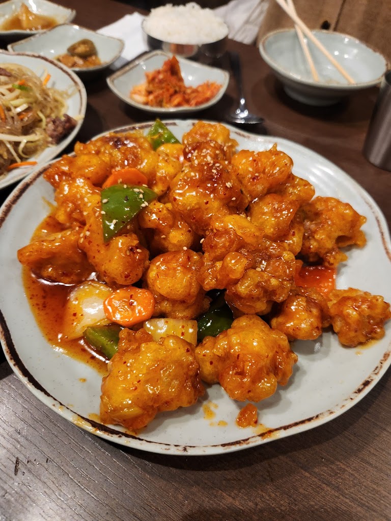 Absolutely wowed by the ratio of price to portion to taste of the food. The menu was so huge that it was very difficult to pick our food. We got the japchae, tteokkbokki, sweet and spicy fried chicken, bulgogi on a hot plate, chicken katsu and kimchi fried rice with chicken. Everything exceeded our expectations. Everything was so fresh and flavourful. I had also asked them to make the food less spicy as my tolerance is quite low and they did that perfectly, hence I was able to enjoy every single item! The dishes were all under $15. Absolute bang for the buck. And believe me the portion sizes are huge! I went with two others and we had to take most of the food for takeout. With tax and tip the total came to $75 for 4 dishes. The restaurant is also located at a very convenient spot, only a 2 min walk away from the subway station. I cannot wait to try out more things from their amazing menu. It s safe to say we will be coming here a million more times. Also, you get 6 complimentary side dishes and yes you can ask for refills!!! And needless to day they were all very delicious! Service is also very good, lovely friendly staff!! Just WOW!!! These pictures are from multiple visits. P.s. It is a very busy restaurant so be prepared to wait for a table especially on weekends.