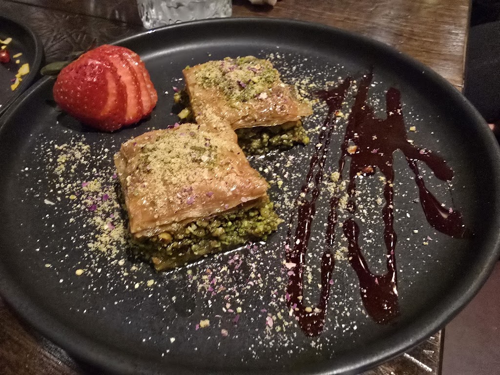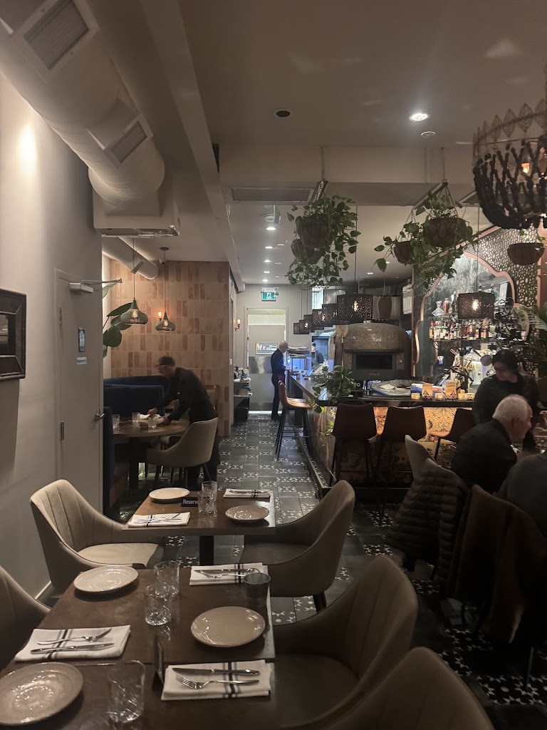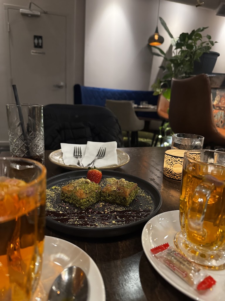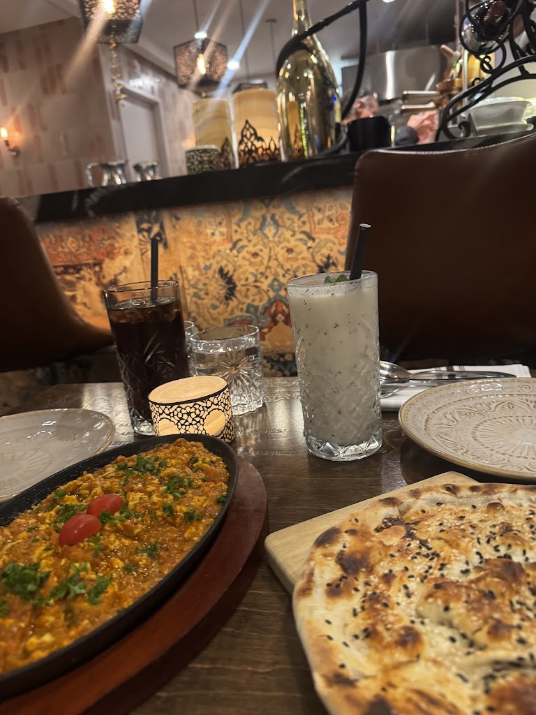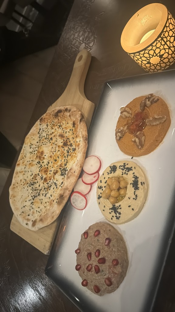 The restaurants warm lighting, plush seating, and Middle Eastern decor create an inviting and cozy atmosphere that makes diners feel right at home.