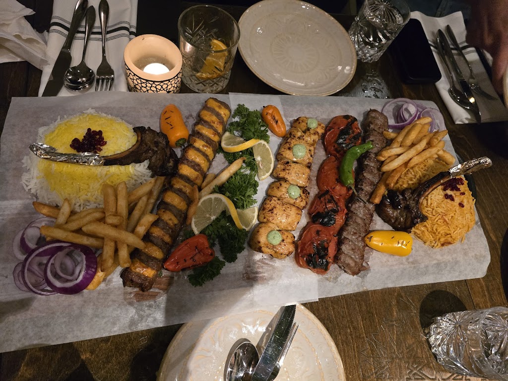 Amazing food, and very kind owners. He came to our table to introduce himself and explain the concept of the restaurant. The food has a more modern take on persian food with touches of lebanese and turkish cuisine mixed in, the kabob still has an authentic taste. The interior had beautiful decorations. Would definitely get the pomegranate ice cream too. 10/10 would go again, they make sure you have a good experience there.