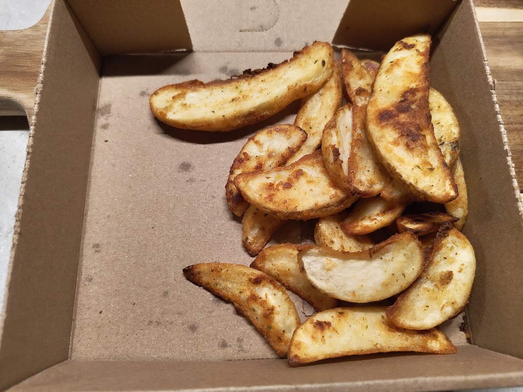 Garbage food. The wings had no flavour and the hot spice wasn t even spicy. Disgusting food and the potatoes were nearly raw. The pizza was good but I almost threw up after having that disgusting pizza. Do not buy from here, no I m matter the rating.