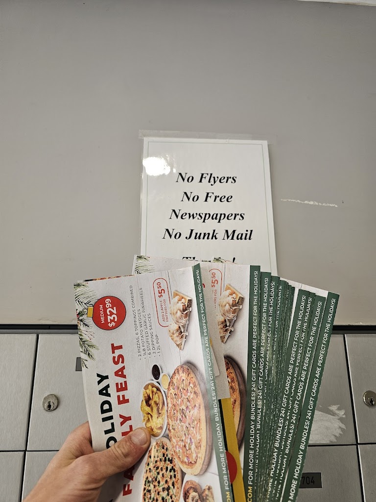 Stop leaving stacks of flyers at my apt building. We have a sign clearly saying no flyers displayed. It is a waste of paper since the whole stack gets thrown directly in the recycling Edit: Obviously didn't speak to the distributor because they are still coming