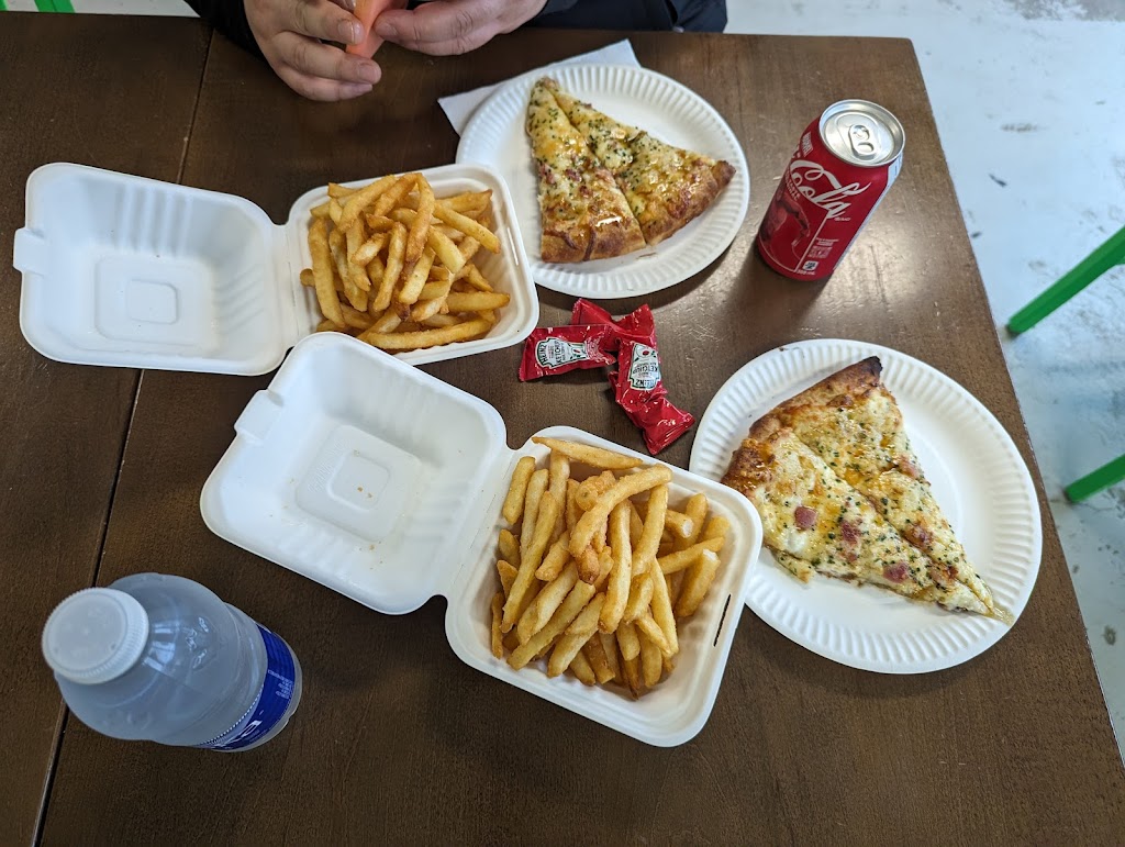 Came here with a friend who wanted to try it out but maybe it was the pizza i got i thought my slice of pizza (the Keanu) did not have the deliciousness that i thought it would have. I thought the slice was also quite small in size and the crust was more soggy than packing any crunch to it. Fries were okay. Maybe i needed to try another slice. Maybe I wasn't feeling the sweet sauce that day. I heard they do have good smash burgers though? I may need to come back another time and possibly change this review for the better. Workers were nice and pleasant though and i did like the environment the store presented, Seems like a previous car garage transformed into a pizza place. Fitting for the geary avenue area.