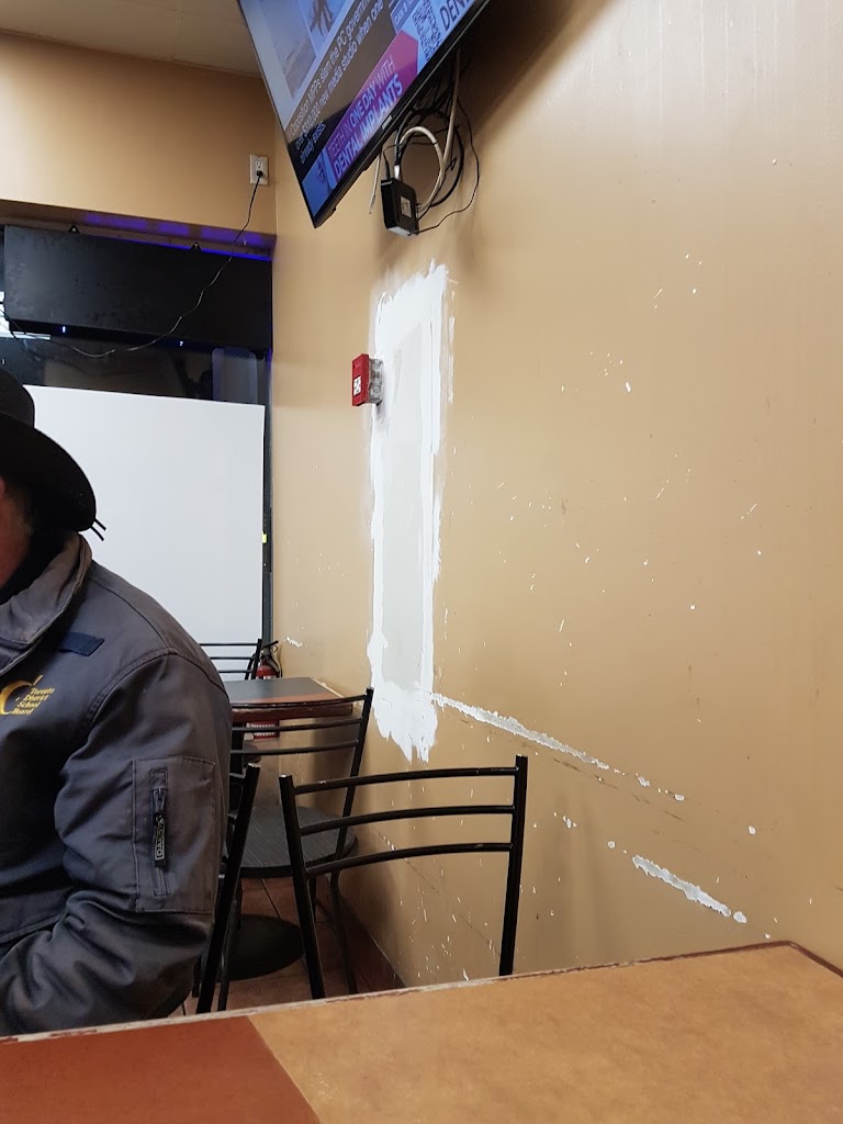 The lady that served us was nice and so was the man that made or order. Food was okay. The premises was horrible, we will never go back. The walls have plaster patches everywhere. Walls were dirty and needed to be painted. Music was waaaaay to loud and there were several drunk men hanging out in the restaurant (and a few outside the door) and they were still being over served, despite them being drunk, loud and obnoxious. My husband and I were surprised that the staff just kept serving beer and spirits to these people. None of the drunks were eating, they were just getting loaded. STAY AWAY FROM THIS HOLE. THEY SHOULD GET SHUT DOWN!