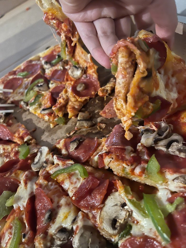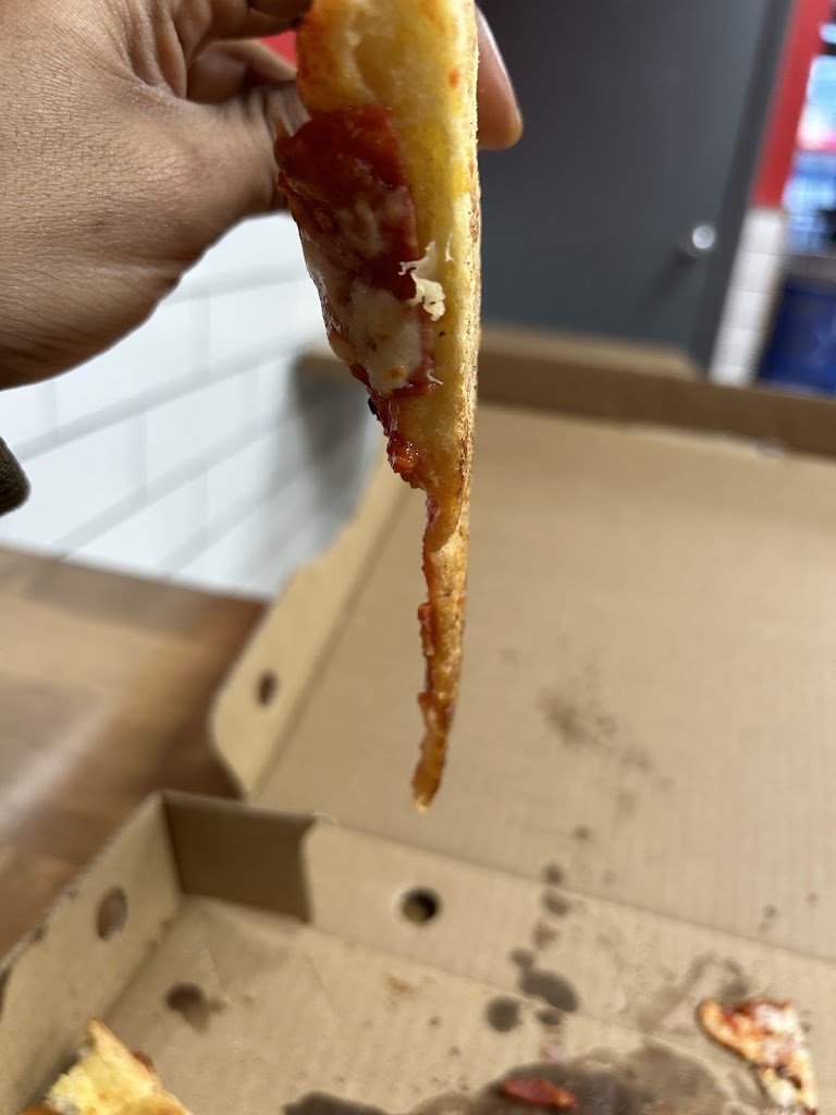Save your time and go to another pizza pizza…. They seem to be making the pizzas thinner and thinner. It’s so thin when you pick it up all the toppings just slide off because they weigh more than the actual crust. I understand cutting costs but this is crazy I never for asked for paper thin pizza.