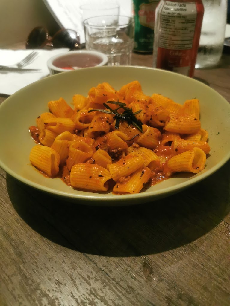 I cant say enough about the taste we tried pasta and pizza they are really great, the service is nice and friendly, overall 5 experience. The only downside is the two big screens, that makes it a bit hard with young kids specially that they play parts of famous nostalgic movies but in one of them it involved +18 scenes and I didnt feel comfortable as my kiddo was staring at screen, other than that the food is amazing