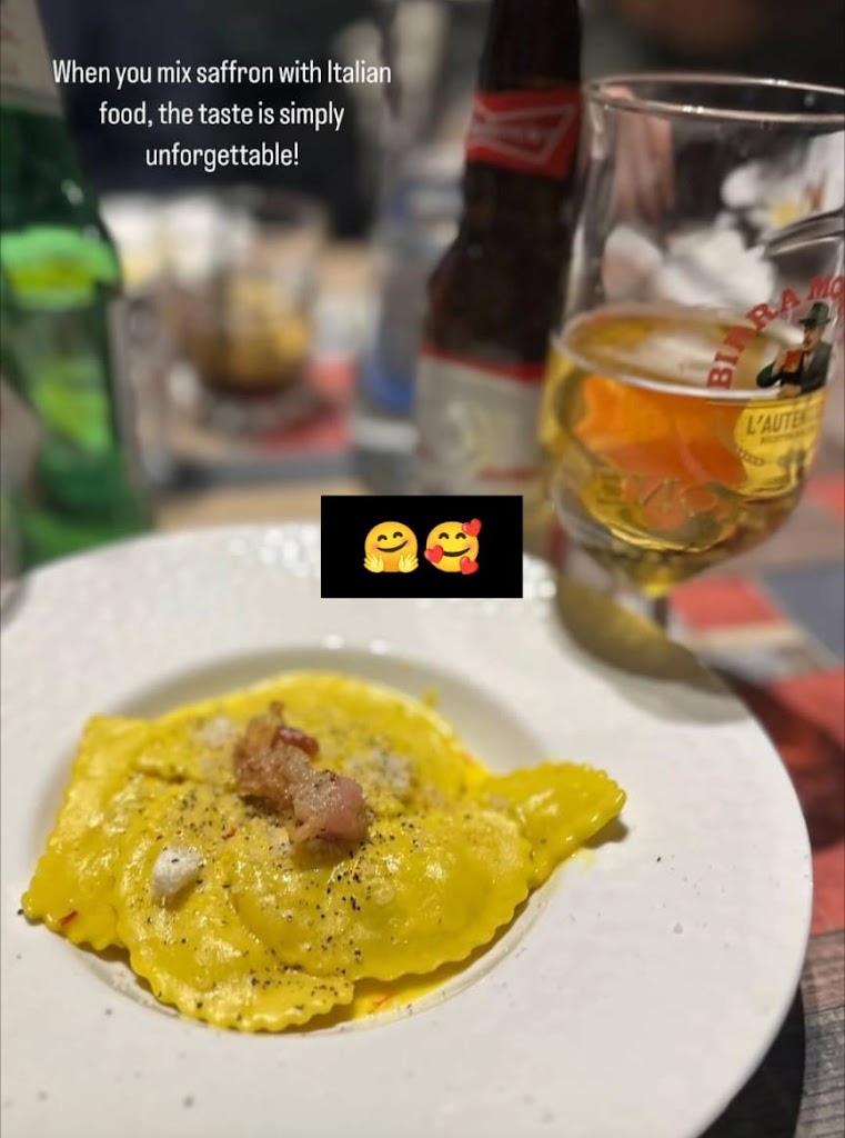 The pizza was great, just like in Italy. We had also the special of the day—ravioli with saffron and guanciale—and it was delicious. The service friendly and attentive. Overall, a beautiful experience!