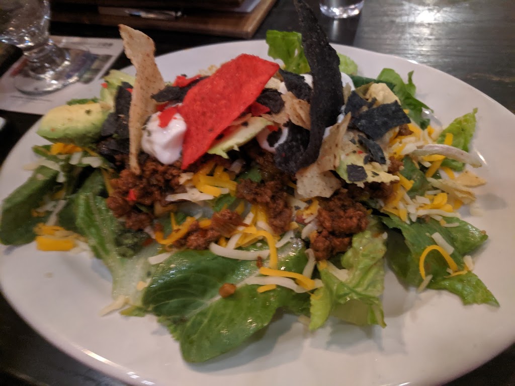 UPDATE Ive now been here twice, and I can say with confidence that this is my go to neighbourhood pub. I have nothing bad to say. The food, the service, and their attentiveness to Covid-19 health procedures were all A+. I came here recently with my partner and our best friends and their son. Our waiter was wonderful. We were being a bit picky and had a bunch of requests, and he accommodated all of them with a smile (or should I say smize b/c he had a mask on the whole time). My friend and I shared the nachos and the special (a lamb burger). So much food, and so delicious. My partner had the chicken sandwich and said it was to die for. My other friend had the pulled pork sandwich and her plate was bare at the end of dinner! I had a few bites of my partners sexy fries (aka truffle parmasean fries) and they were sooooo good. PAST REVIEW Id been waiting to try this place since it opened. My partner and I decided to come here with another couple for dinner. I got the nachos. They DO have cheese on them, even though the menu doesnt list it as a topping lol. They were pretty good and layered decently. My friend had the taco salad. It came with fried tortilla which we thought would be the delicious fried tortilla shell that many taco salads come in. Unfortunately it was just a few tortilla chips. My partner and I also tried the Truffle Arancini to start. They were really good and had an interesting Mexican flare. Quite a few things on the menu Id like to try. Id like to come back and stay for some more drinks too. Good local gastropub.