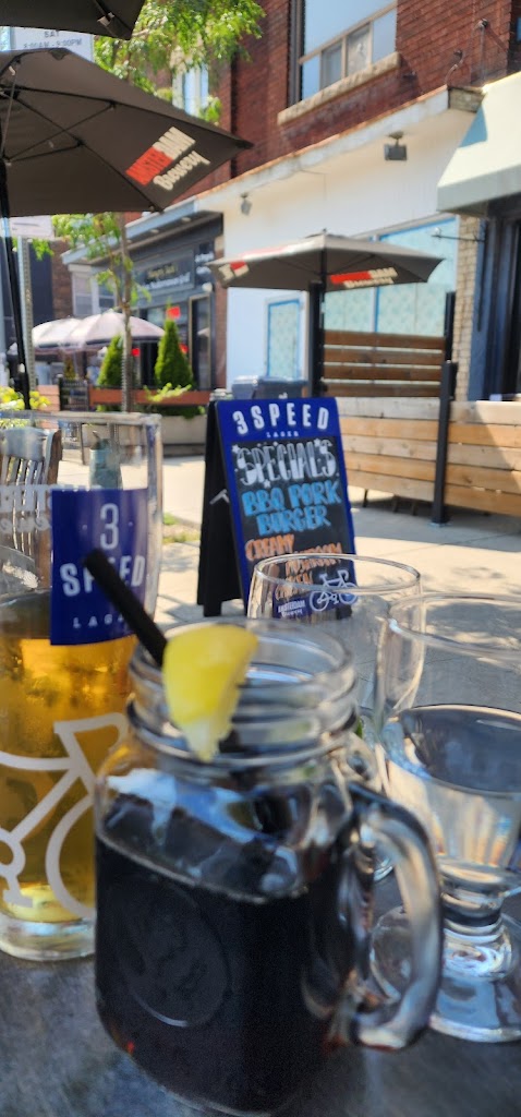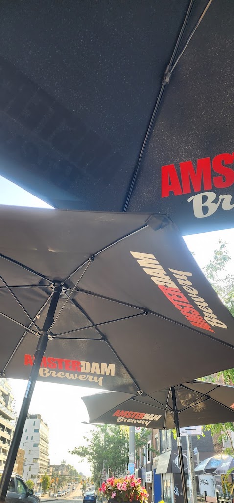 Interesting neighborhood pub on St. Clair. Indoor seating in a long narrow dark room with a tv. Outside seating in 2 sections on either side of the sidewalk. Umbrellas to shield the sun but it depends on the hour how effective they are. Had a drink and burger with fries. Typical prices. Decent burger with fries. Some creatively in the drink selection. The waiter spoiled water on me while cleaning the table right beside but luckily it missed me for the most part. Some families were there along with many regulars. Willing to visit a second time to see what it's like.