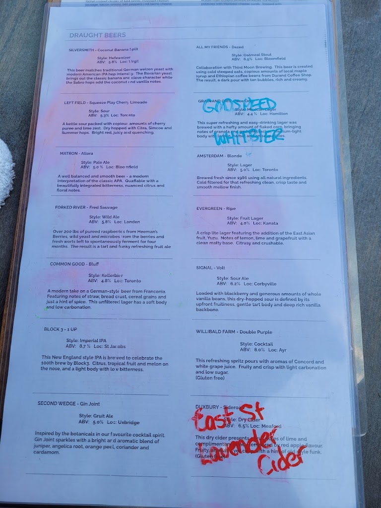 Great local place in the Saint Clair West neighbourhood with various craft beers! Surprisingly delicious food as well! And large serving portions. I had fish tacos and they gave me three but I could only finish to and being honest would have been fine eating only one! So you get what you pay for which is great and even leftovers to take home! They have a nice outdoor patio especially now with covid with lots of space! And they have heaters because its getting a bit cooler.