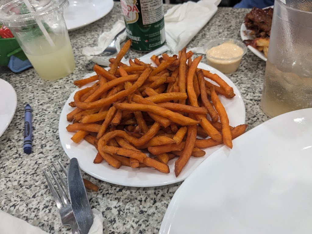 Service 1 server for busy restaurant damn not great. Really good burger and tasty fries goid portion