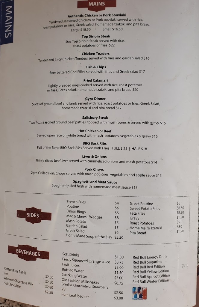 I m old school, I love liver and onions with some good mashed potatoes .you can t find it almost anywhere . But tonight John and George, the 2 brothers who own this spot made me the most spectacular liver and onions I ve ever eaten! So good! Unbelievably delicious! Soft, seasoned perfectly and the onions were slowly sautéed for hours, the way it should be, but who does that anymore? These guys do! The flavour was so intense, so perfect! Well, I m a believer! I found my new go-to place! If they can do this with liver and onions, I just can t wait to taste their burgers, souvlaki .well everything! Do yourself a favour ..explore this place .you ll fall in love! Ps. Prices are so reasonable and affordable I could eat here every day