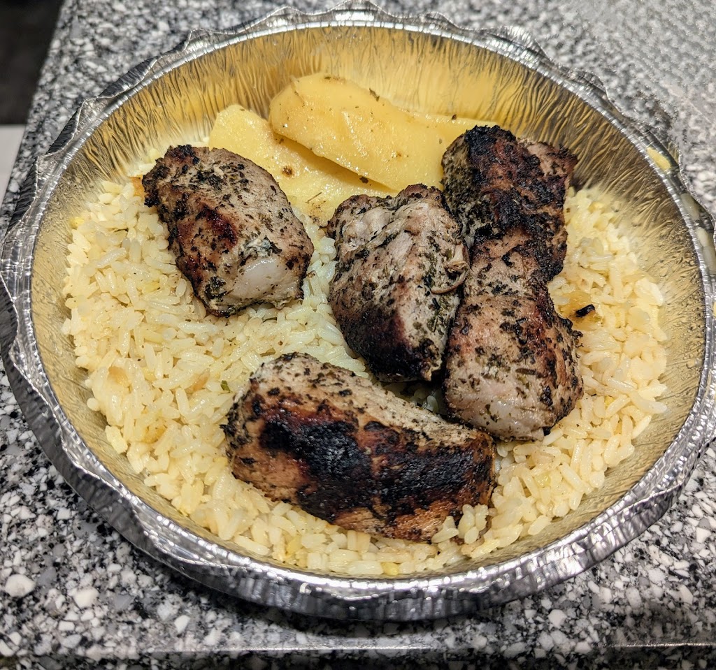 I have ordered from this restaurant many times. This order was not acceptable and not up par with the price paid for the chicken souvlaki dinner. Ordered the dinner with potatoes only and they gave the exact same 4 piece of potatoes as if it came with rice. For $22!!! And I was denied any partial refund. So $4 for service fee, $5 tip and I get four potatoes and 4 pieces of chicken. The fries were greasy and soggy this time and the chicken was very dry. Each meal was $22. Pretty sad for $$60 for two ppl. And restaurants complain they re not getting enough business I ll be sure to look elsewhere instead of just staying local in the neighborhood. The last few orders haven t been as good so clearly time for a change.