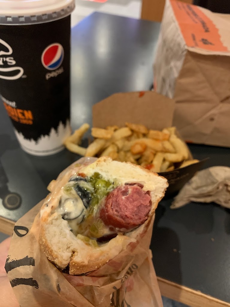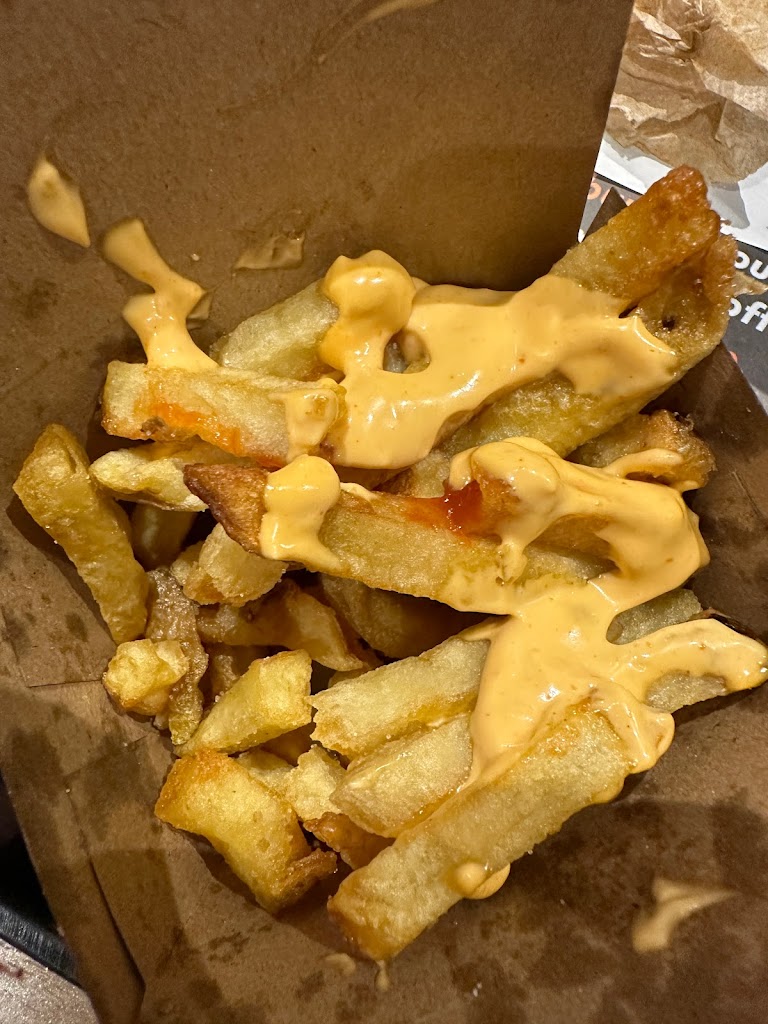 I ordered a chicken bacon ranch poutine but the cooksman in the back forgot the bacon. Nice workers up front and following covid precaution protocol. The burger was cooked nicely and tasted good. Fries are good too.