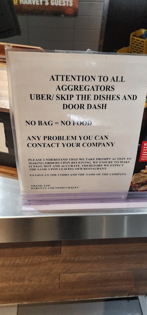 This Harveys is also a Swiss Chalet. The staff is friendly and the food is consistent. Students come in for lunch on weekdays, so it sometimes gets a little busy, but theres always sufficient seating.