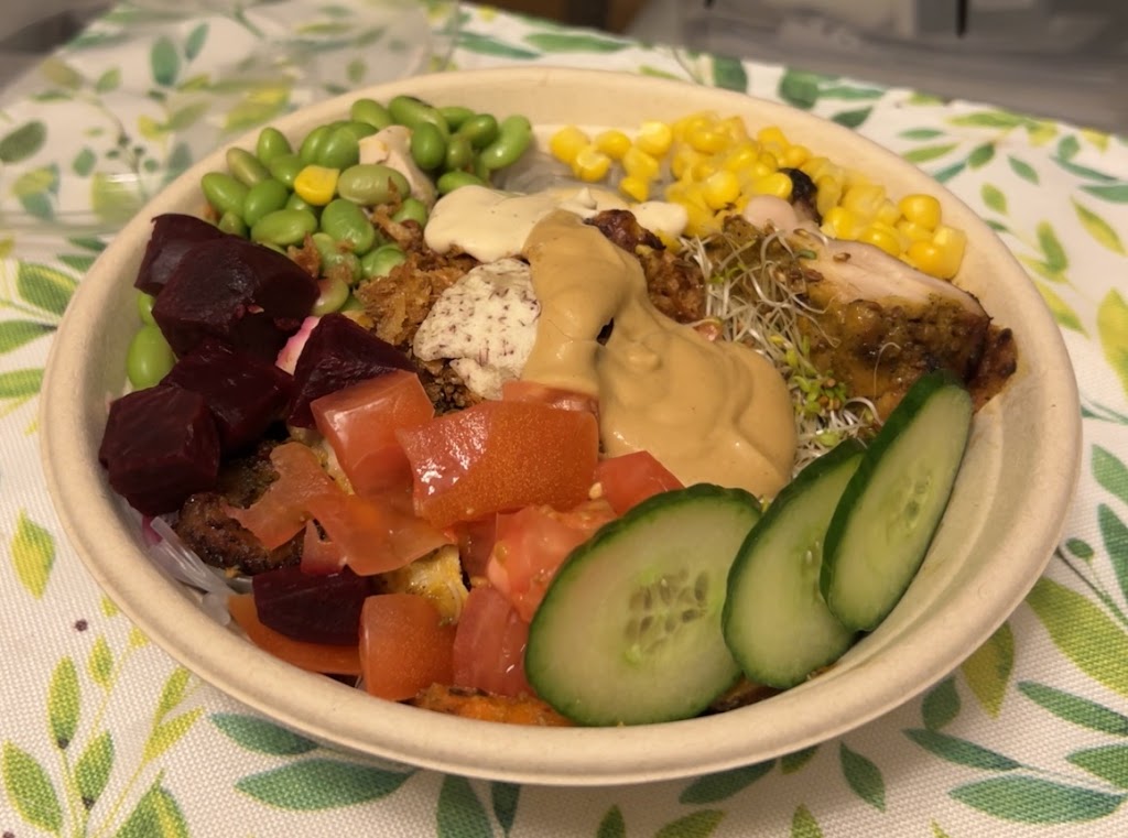 Ordered online. A bit disappointing selection of vegetables. There are SO MANY vegetables around. Their roasted vegetables base is potatoes, sweet potatoes and carrots. Meh. Chicken has bones, very difficult to eat as part of the bowl. Another main bowl component - the sauce. Their sauces are definitely store bought, garlic aioli is garlic Caesar dressing. Cmon, sauces / dressings MAKE bowl, elevate it. My search for a local bowl place continues.