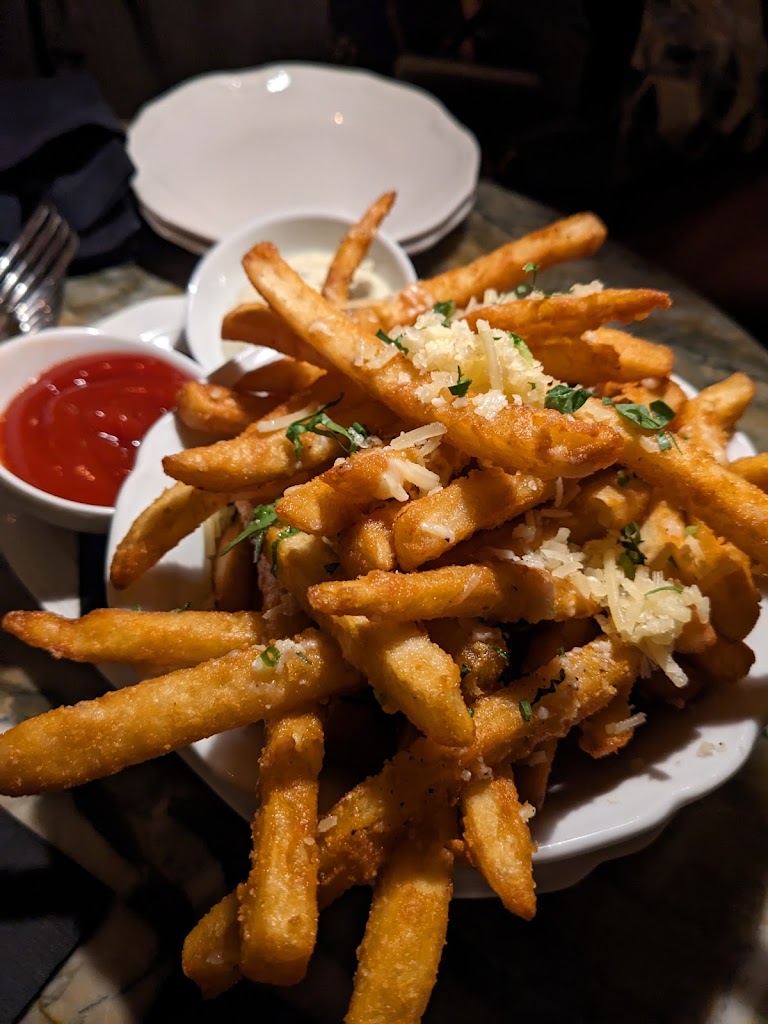 Ordered oysters, fries, proscituo, beet hummus and drinks... tasty food, delicious drinks, upscale environment and bar. Thursday afternoon at 3 30pm and it was a full house