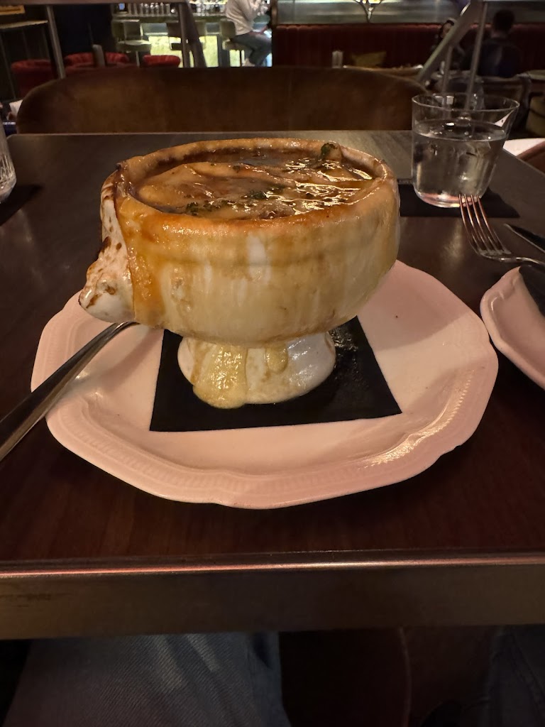The atmosphere here is so nice, my waiter was very friendly and helpful. The french onion soup was delicious!! Definitely pricey but it balances out with how unique of a vibe it is here.