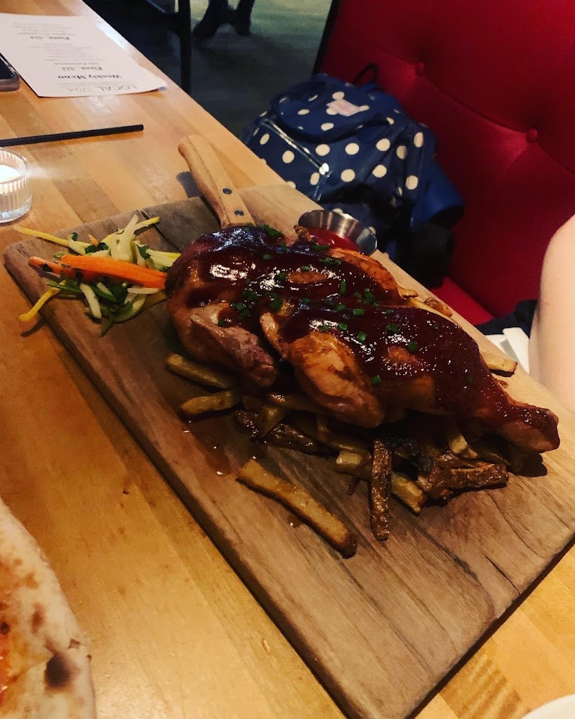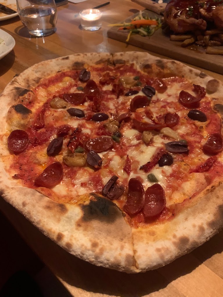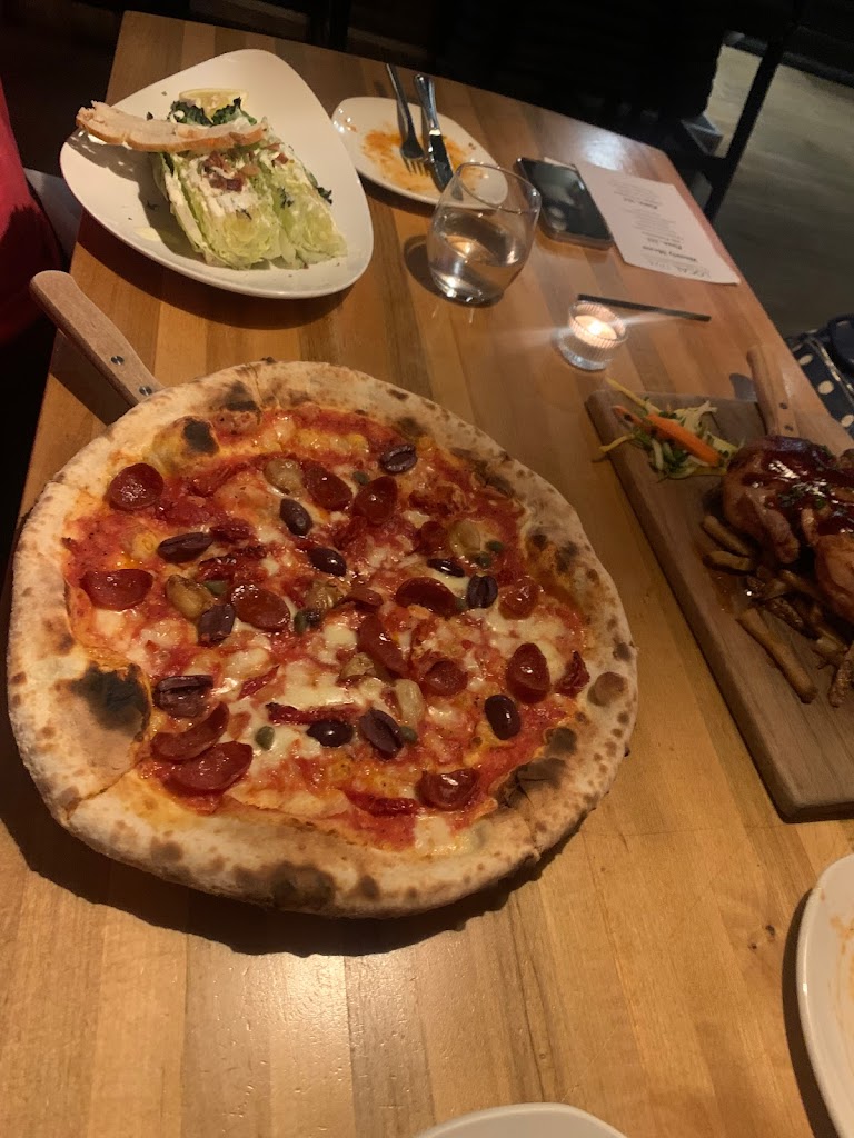 We sat on their footpath patio which rhe tables are spaced nicely and the staff are all wearing face masks. We shared the Thia mussels as a starter, really good flavor but a little on the salty side. For mains we shared a Wild Boar pizza and Vegetarian gnocchi. Both were really good flavor wise and size. I preferred the pizza and my partner preferred the gnocchi. I also had the carrot cake, perfect. Would go again.