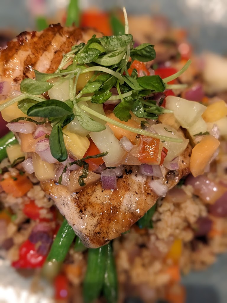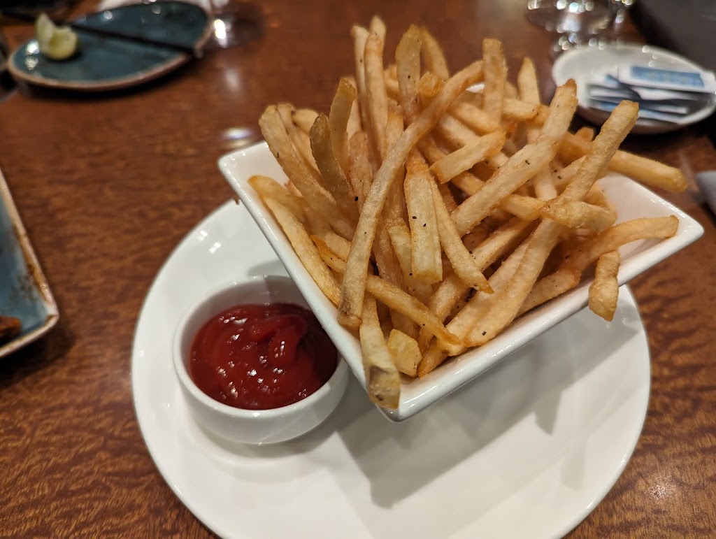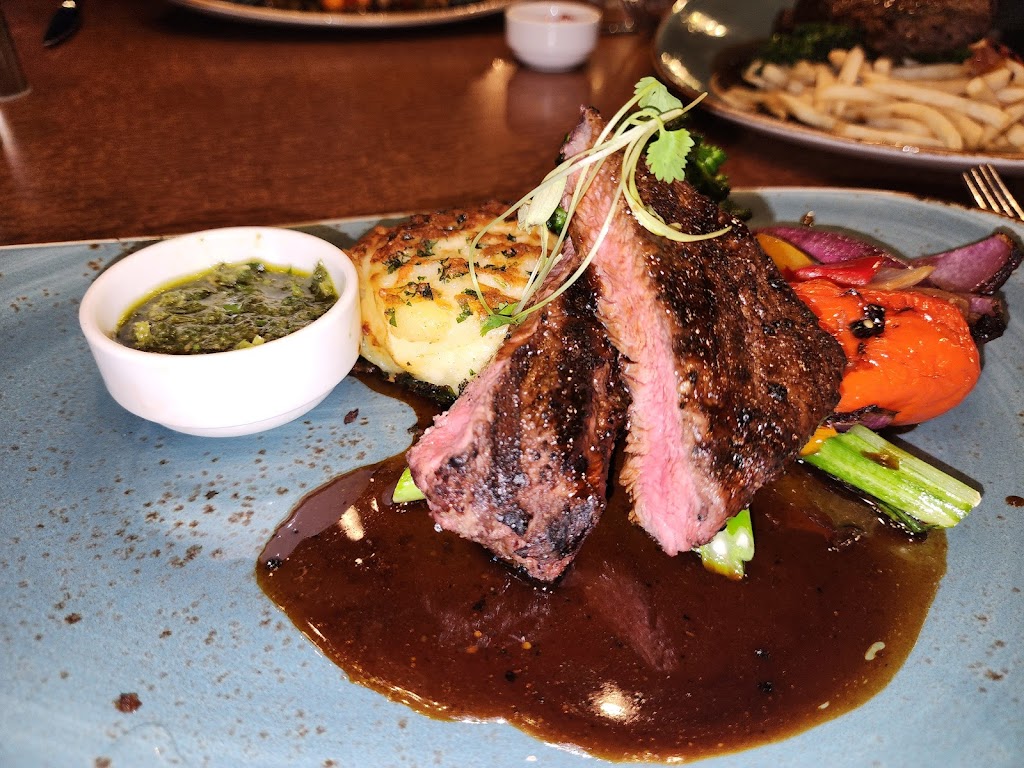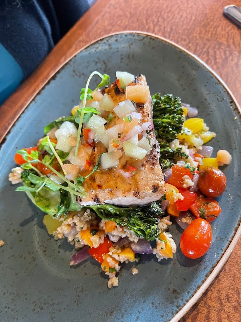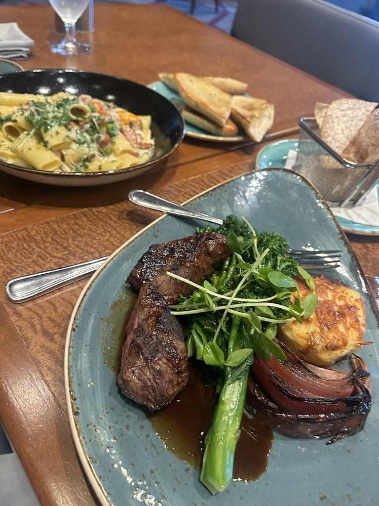 Salmon was good, needed a little more plavor. The blue cheese teriyaki steak frites did not agree with my pallet. But the meat was cooked to perfection.