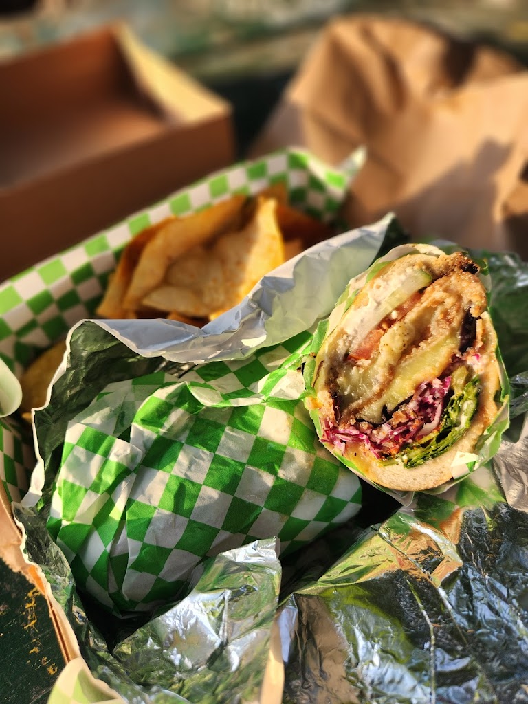Highly recommend this place. I found it on Google, and when I arrived I noticed it was in the back of Opera Bob's (bar). Had no issue ordering just a sandwich (though it would've gone great with a beer). I had the vegan eggplant sandwich and chips-absolutely delicious. The owners were very kind as well. 10/10 experience.
