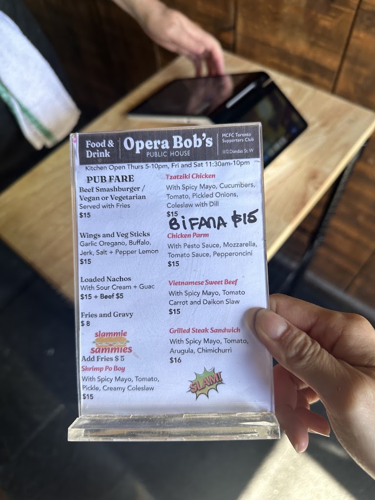 I was very excited about Slammie Sammies after seeing their menu and ordered pickup from them for dinner yesterday. I think this establishment has a lot of potential, just needs to smooth out some operational/logistical issues. My partner and I ordered two sandwiches for takeout so that we could eat them on the patio before going to see a show. We placed the order online and we’re given a wait time of 20-25mins. Not a problem, as we still had to walk over. By the time we arrive to pick up our meal, at least 30mins has passed. However, the server who greets us immediately runs into the kitchen and then comes back apologizing that the online orders take a while to go through so it would be a bit of a wait, another 5mins, which was not a problem for us. We sat down inside to wait and luckily the Olympics were on because it was about 20mins before we got our order of two sandwiches. And when we opened the bag I realized that the side of peppers I ordered was missing. I find the chef and he tells me he will be right back with them, so I stand and wait. After 5mins it is evident that this will take a while. I go sit back down to eat and we were almost done our halves of the first sandwich before we get the peppers, which was just a small container of cold (marinated?) cut up chilli peppers. Regarding the food, the sweet beef sandwich was incredible. The beef was tender and crispy, and the pickled carrots and other filling ingredients worked so well together. Altogether delicious. The tzatziki chicken however was quite disappointing. While the sauce and flavours were good, the grilled chicken was awful. It was ok to bite off but the texture was like tree branch - as I’m chewing, the bread, vegetables, everything went down and I was left a mass of chicken fibres in my mouth which somehow could separate but could not be chewed through. This chicken was either way over cooked or cooked directly from frozen? After the long wait for the order after arriving at the bar for pickup, we were expecting a lot better. We ended up tossing out most of the chicken sandwich because we just couldn’t chew through it. Again, I feel there is a lot of potential here based off of the exciting menu and the well made beef sandwich. However, they have some work to do to improve timing and consistency. This was actually our second attempt to get sandwiches from them - we walked over for dine-in one day in late July and were told by the bartender when we got there that the chef was not in all week. It would have been nice to have this as an update somewhere online. Hoping that that things work out because I’d still like to go back someday to try more of the menu!