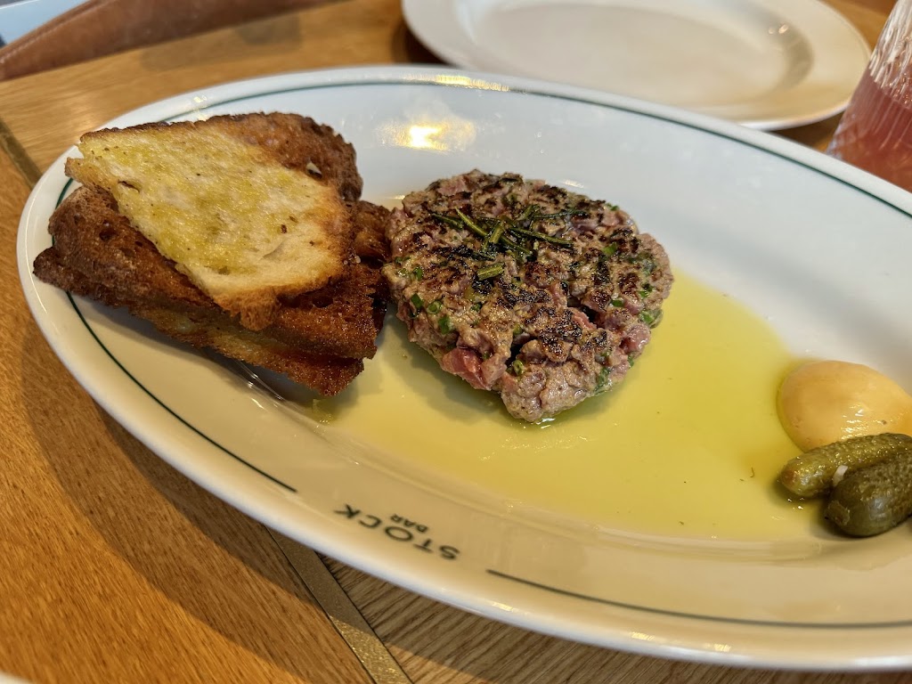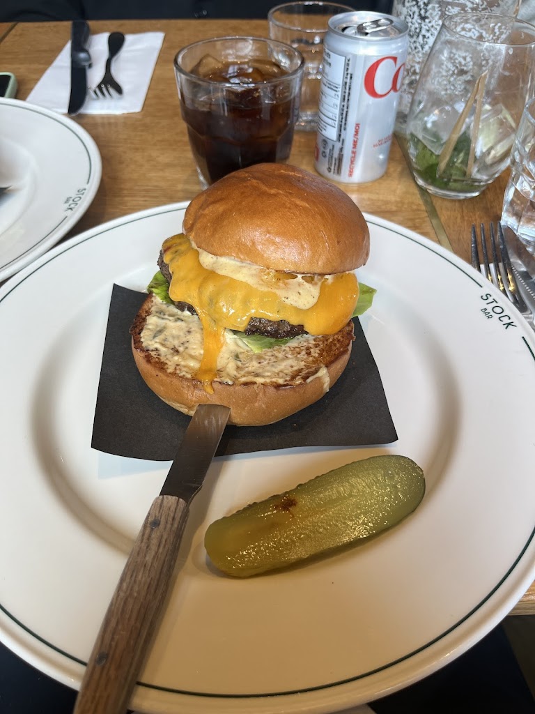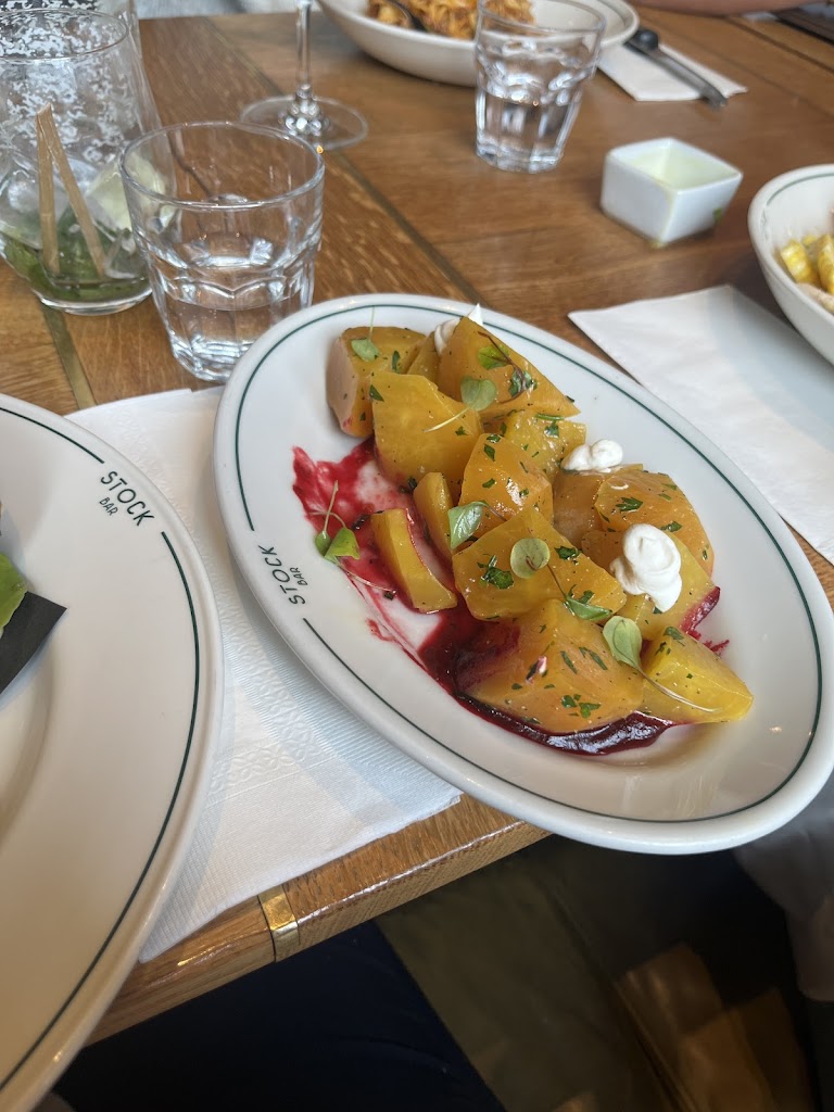 I had a fantastic meal at Stock Bar! I ordered the burger with a beet salad on the side, and both were absolutely delicious. The burger was juicy and flavorful, cooked to perfection, and paired wonderfully with the fresh and tangy beet salad. The combination of the two made for a satisfying and well-balanced meal. The atmosphere at Stock Bar is laid-back yet stylish, making it a great spot for a casual bite with friends or a solo meal. I’ll definitely be coming back to try more from their menu!