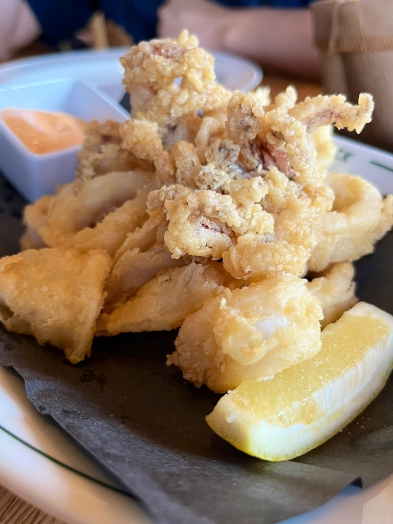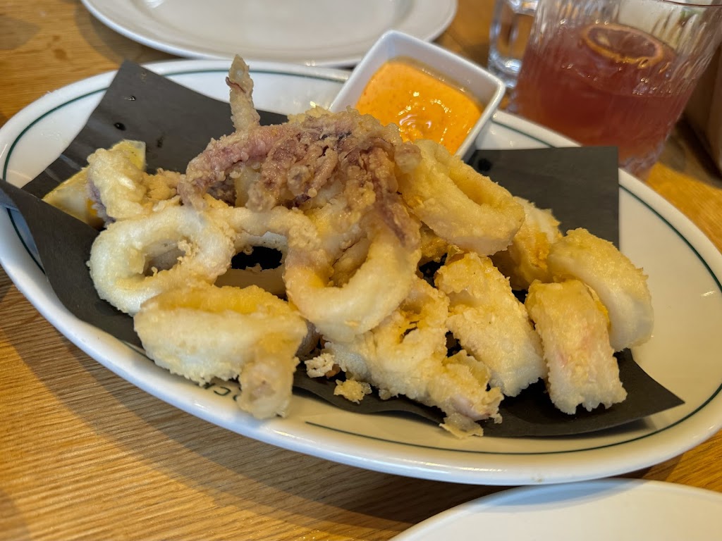 Great place and great atmosphere. Their calamari is always so very delicious - crispy and light coating, tender meat, and well seasoned. Such a favorite. The prosciutto pizza and the cheeses were good too. We also got the pasta of the day which was a crab ravioli; unfortunately was disappointing. The pasta itself wasn’t al denté… it was undercooked. And the filling was “fishy”. It didn’t taste fresh at all. We should’ve gotten the bolognese instead. We’ll always come back here. Even if the parking situation is a headache. They have good and quality food, a great lower level market, and such a good atmosphere. I actually always bring out-of-town visitors here.