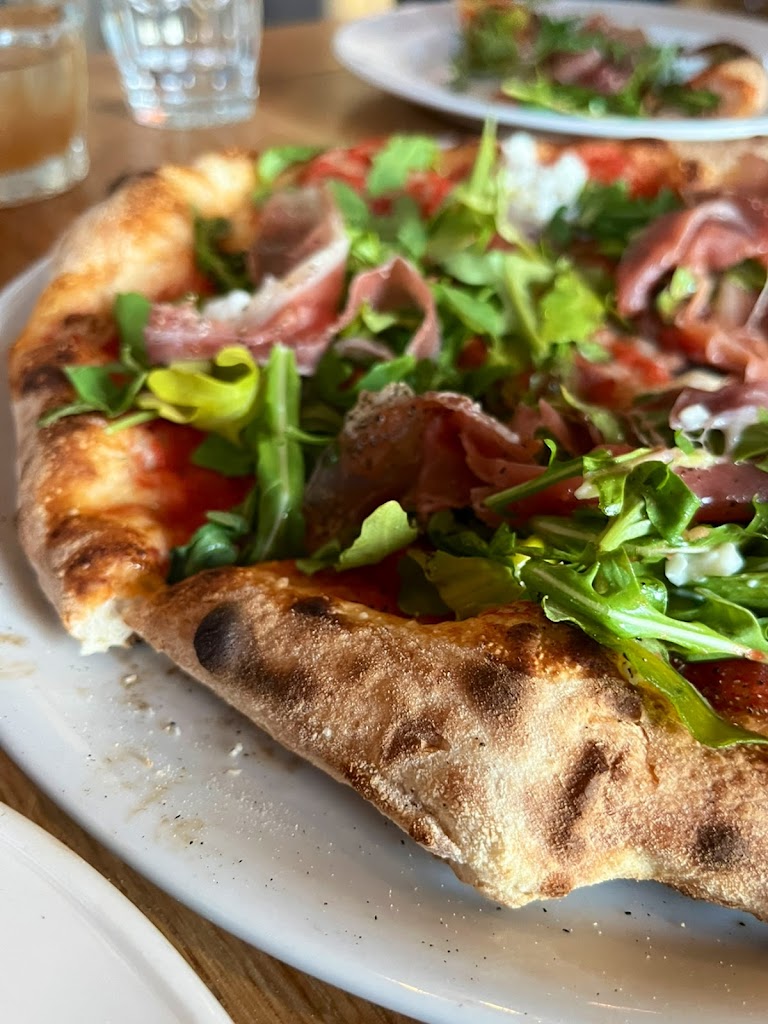 We had a wonderful evening here. The ambiance is decadent and cozy. We had the mortadella e pistachio pizza which was divine. These are real Italian pizzas where the crust is thin and crispy and the flavours of the fresh toppings are vibrant; not smothered and lost in a sea of sauce and cheese. The pistachio flavour and crunch was a delicious pairing with the mortadella. Loved it. They only make Caesar s on Sundays, by the way! Haha, I found this unique quirk funny, even though it was what I had originally wanted to order. We will definitely be back.